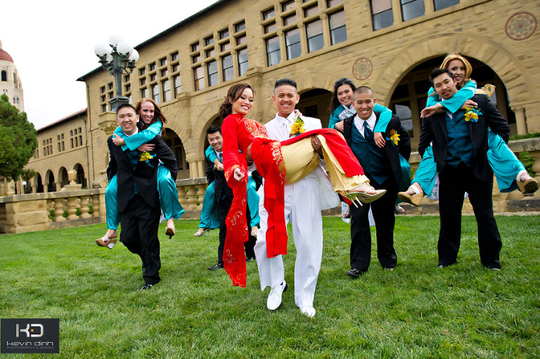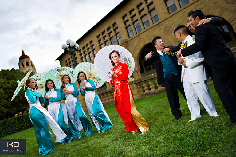 This is definitely one of the wildest wedding to remember. I had such a blast being there, witnessing and capturing the all the wonderful, fun, and crazy moments of Thao & Phong wedding. They sure know how to throw a party. The day started out chilly and gloomy with an overcast sky. We prayed that the sun would come out. After the preparation we drove to Stanford to do our shoot. It was totally worth the drive. Standford is one of the most beautiful campus in California. There were actually more than 10 wedding shoots happening at the campus. To our relief, the sun came out and Stanford was just paradise. The campus has the greenest grass and most beautiful buildings I have seen. With blue sky and the sun in the backdrop it was picturesq time. The groom and the best men were the coolest dudes I have worked with. We goofed around and were just being boys. I haven’t laughed so hard that i almost choked up while shooting the guys. But the best part of all was how beautiful the bride looked. She was just stunning in her bridal dress and Ao Dai (Vietnamese traditional dress), and we captured some amazing photos. Enjoy…Don’t forget to leave a comment and let us know how you think…